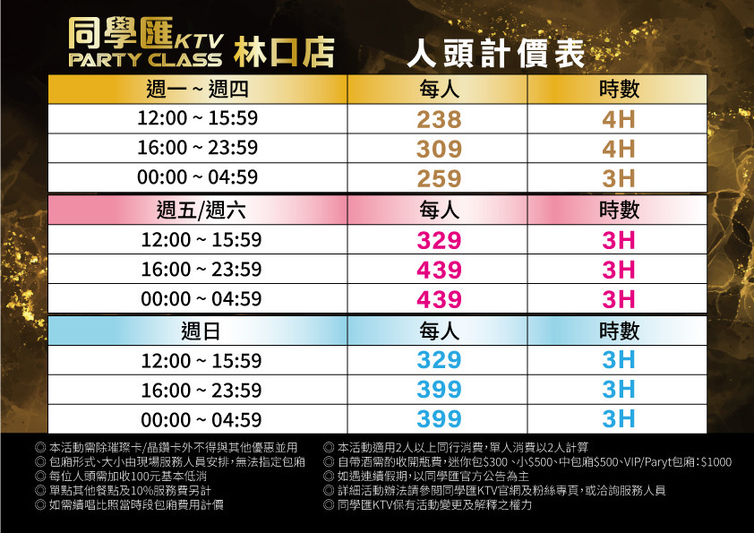 人頭計費表-林口店